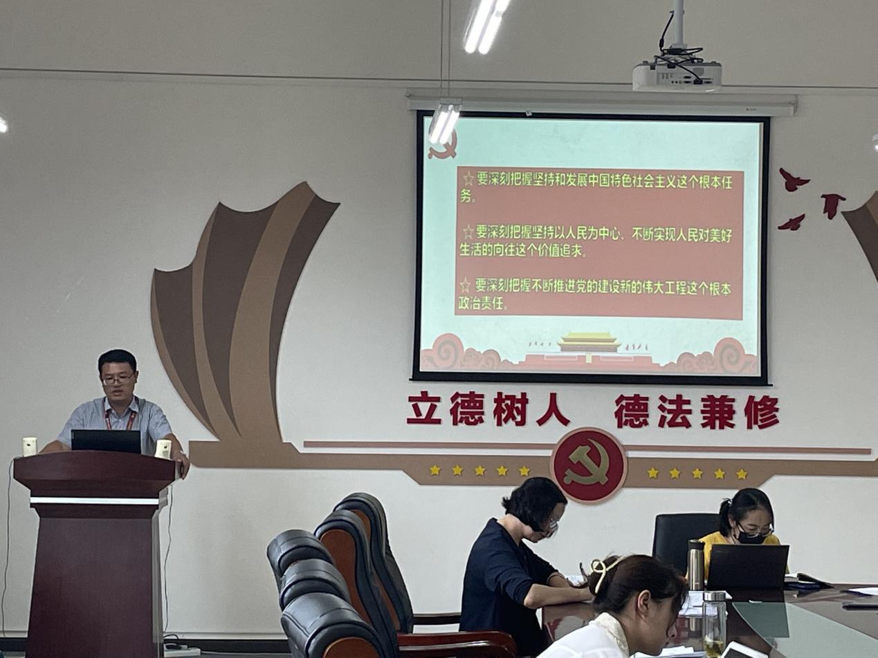 詹伟紧紧围绕习近平总书记“七一”重要讲话精神,从“充分认识习近平总书记‘七一’重要讲话的重要意义”、“深刻把握习近平总书记‘七一’重要讲话提出的重大思想、重大观点、重大论断”、“紧密结合万搏在线开户工作实际贯彻落实好习近平总书记“七一”重要讲话精神”三个方面深入细致地进行了宣讲。他强调,全院师生要把学习贯彻习近平总书记在庆祝中国共产党成立100周年大会上的重要讲话精神,作为当前和今后一个时期的一项重大政治任务。深刻领悟其中的精神实质和丰富内涵,作为在教育教学实际工作中激励精神的“振奋剂”、指导行动的“指南针”、解决问题的“金钥匙”。最后,詹伟勉励师生在培养“立德树人、德法兼修”的法学专业人才上下功夫,做实现学校“一个中心、两大工程、三化同步”战略目标和“学术立校、学术强院”过程中的积极参与者和努力作为的建设者。