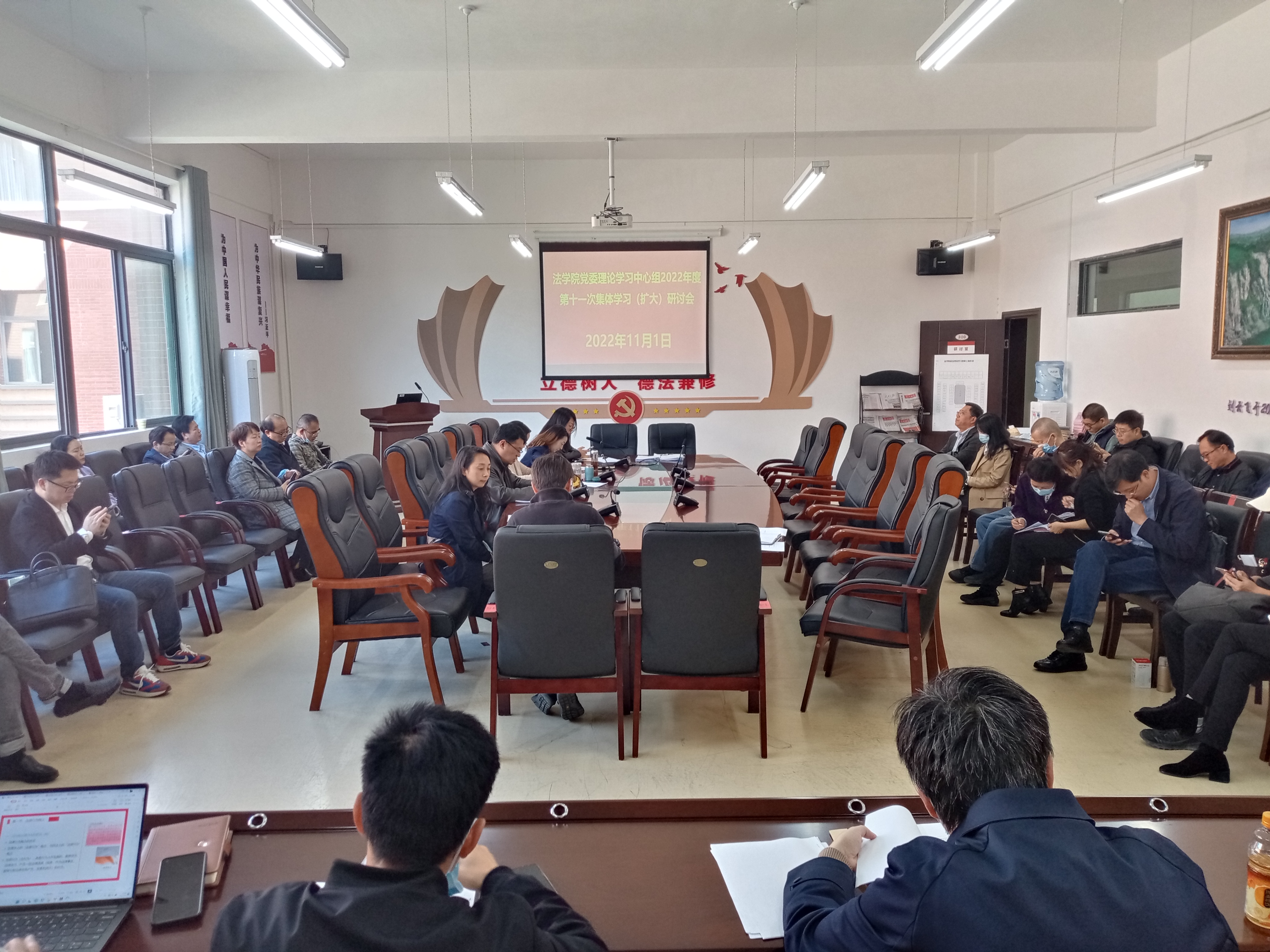 2022年11月1日上午,万搏在线开户党委理论学习中心组围绕“党的二十大精神”专题集中学习研讨。学院领导及全体行政人员、支部书记参加会议,学院党委书记詹伟主持会议。
