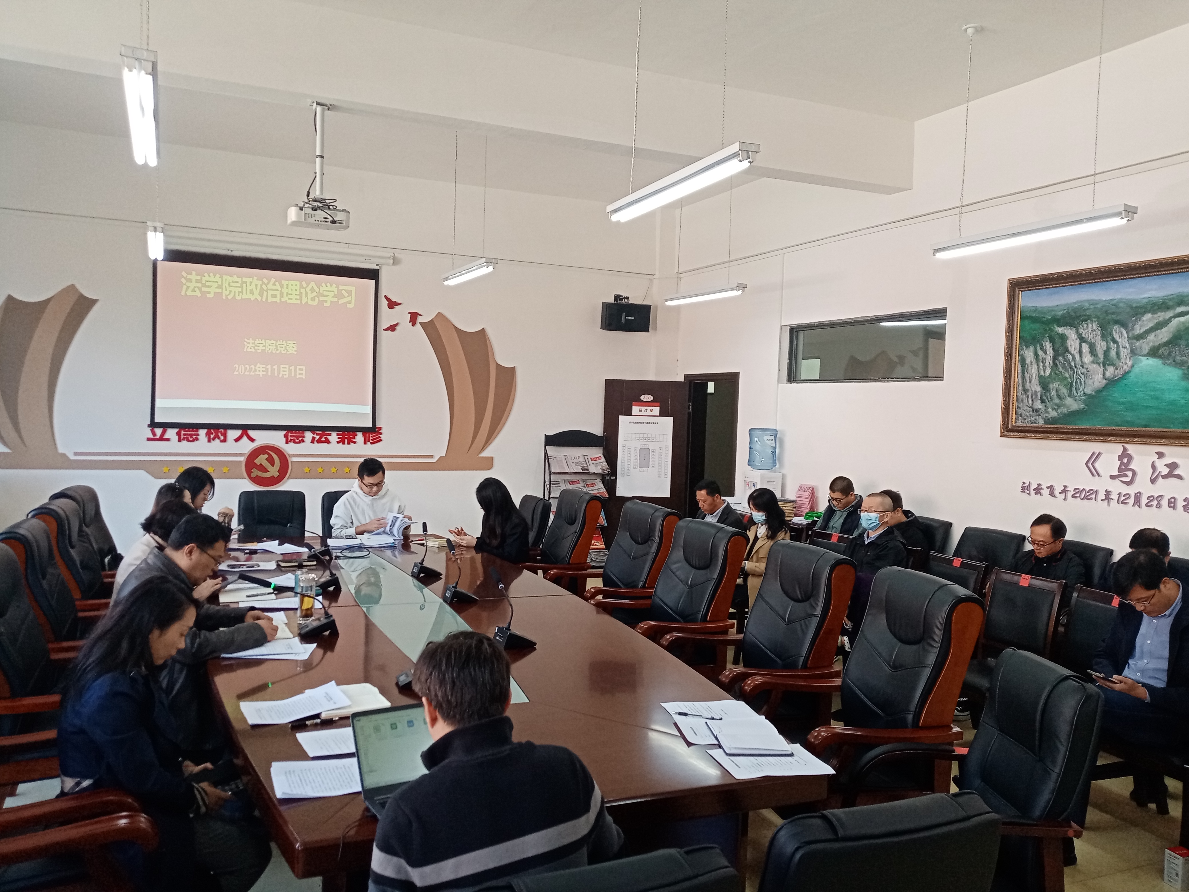 2022年11月1日下午,万搏在线开户党委围绕“党的二十大精神”专题组织召开2022年度第十三次教职工政治理论集体学习研讨会议。院领导及全院教职工出席会议,院党委书记詹伟主持会议。