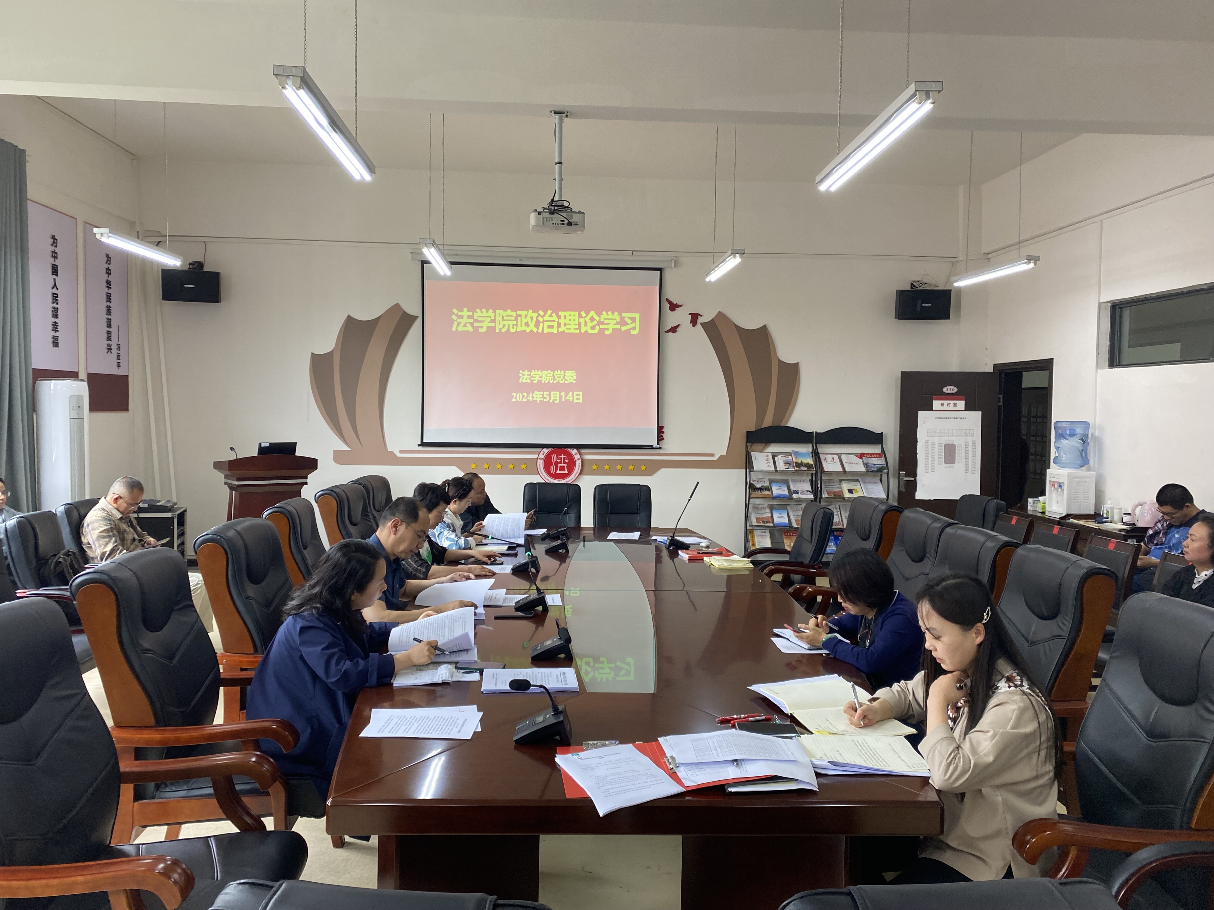 会议传达学习了习近平对学校思政课建设、对政法工作作出的重要指示、《民法典》《中国共产党党内监督条例》《中国共产党党员权利保障条例》《中国共产党纪律处分条例》《中国共产党章程》《省教育厅办公室关于印发<2024年全省教育系统普法和依法治理工作要点>的通知》《贵州财经大学落实师德师风建设主体责任实施办法》等会议和文件精神。