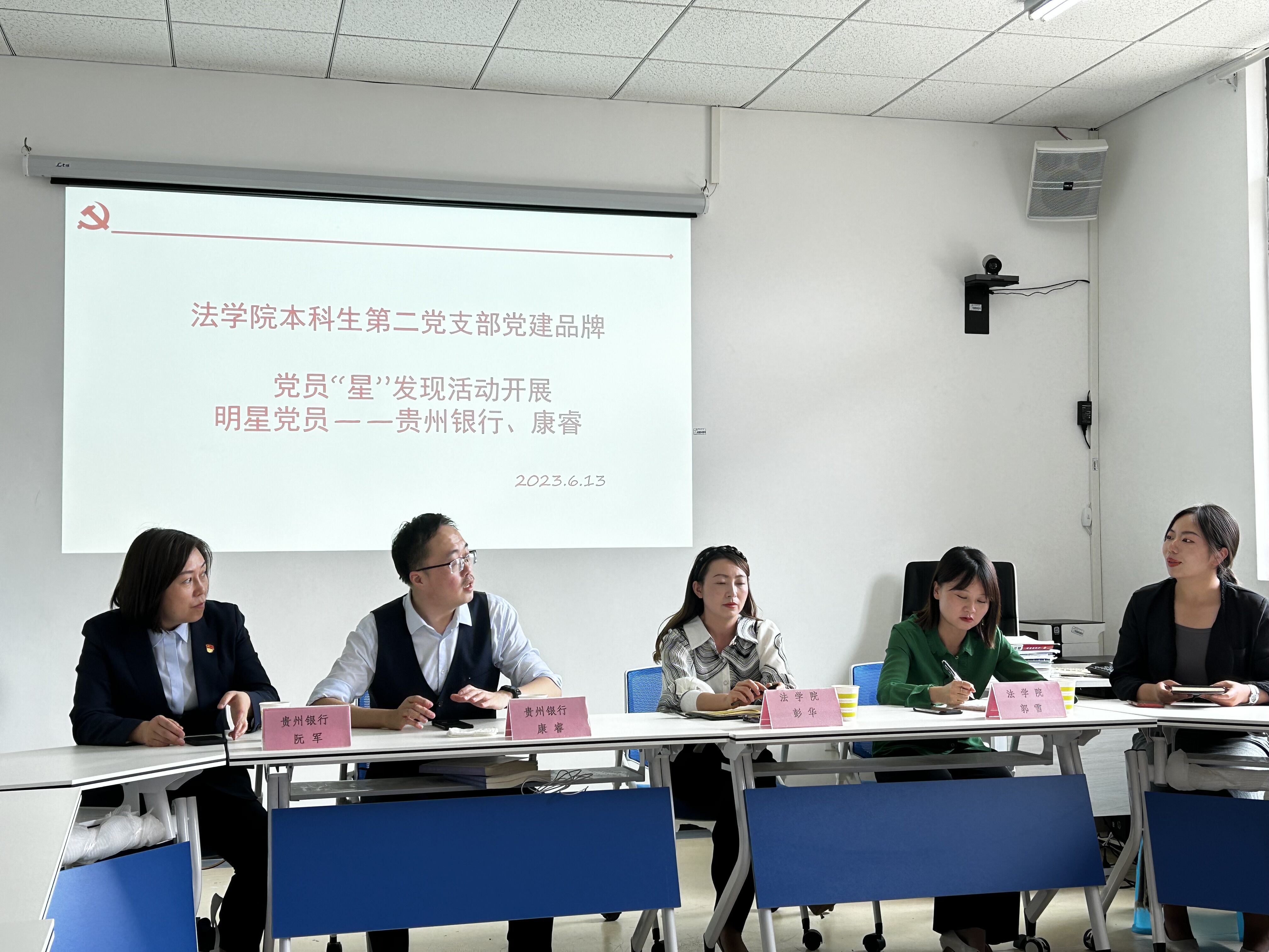 为落实学习贯彻习近平新时代中国特色社会主义思想主题教育相关要求,切实提升在校大学生金融素养,倡导学生树立正确的价值观和消费观,2023年6月13日下午,万搏在线开户本科生第二党支部联合贵州银行总行机关第九党支部共同开展了“金融普法、护航青春”主题党日活动。