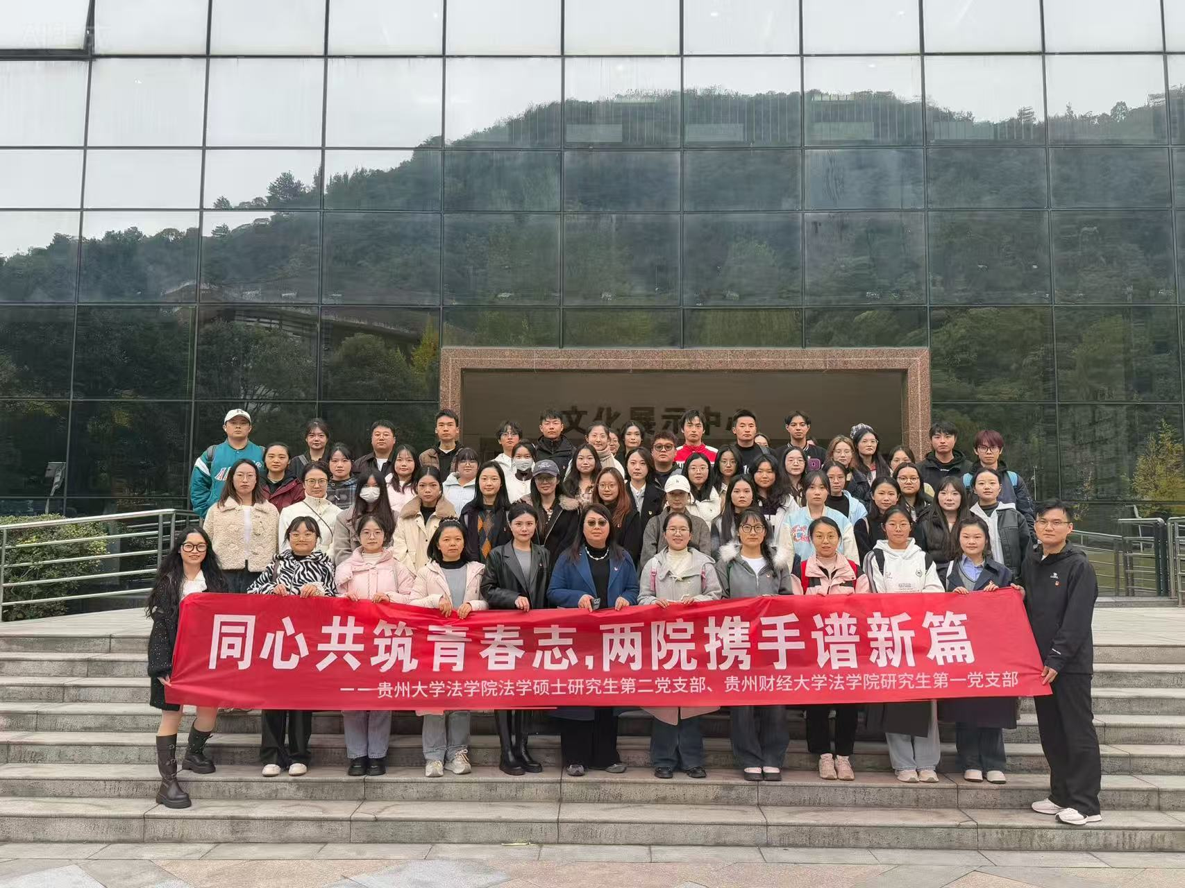 为加强高校党支部间的交流合作,分享支部建设经验,凝聚党建工作合力,2025年11月11日,万搏在线开户研究生第一党支部与贵州大学万搏在线开户法学硕士研究生第二党支部在贵州财经大学票据馆、文德楼105教室联合开展支部共建活动。万搏在线开户党委书记邵新顺、副院长宋昭澜,贵州大学万搏在线开户法学硕士研究生第二党支部书记张橙出席活动,两支部全体党员参加。