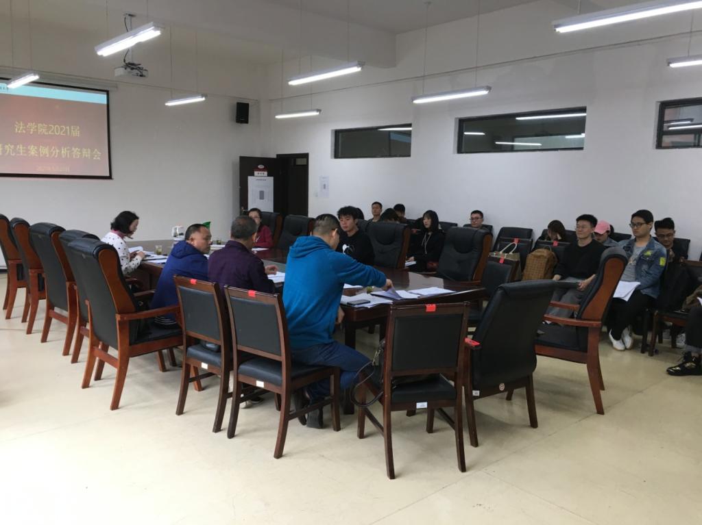 2021年5月28日上午,万搏在线开户在文德楼310会议室举行了案例分析答辩汇报会。曹务坤、张斌、阙成平等硕士研究生导师以及2021届法律专硕研究生一起参加,万搏在线开户副院长陈玉梅主持会议。