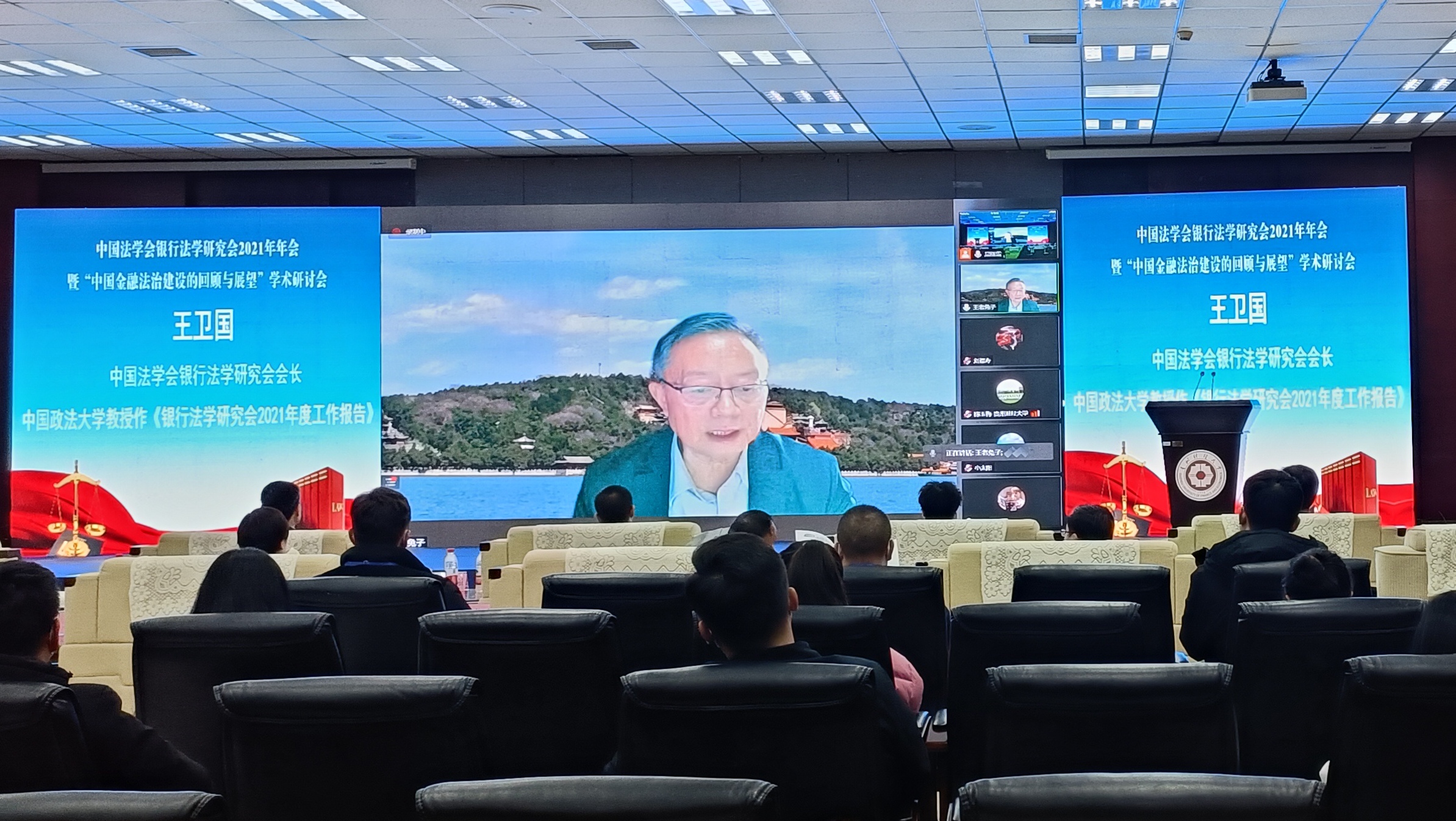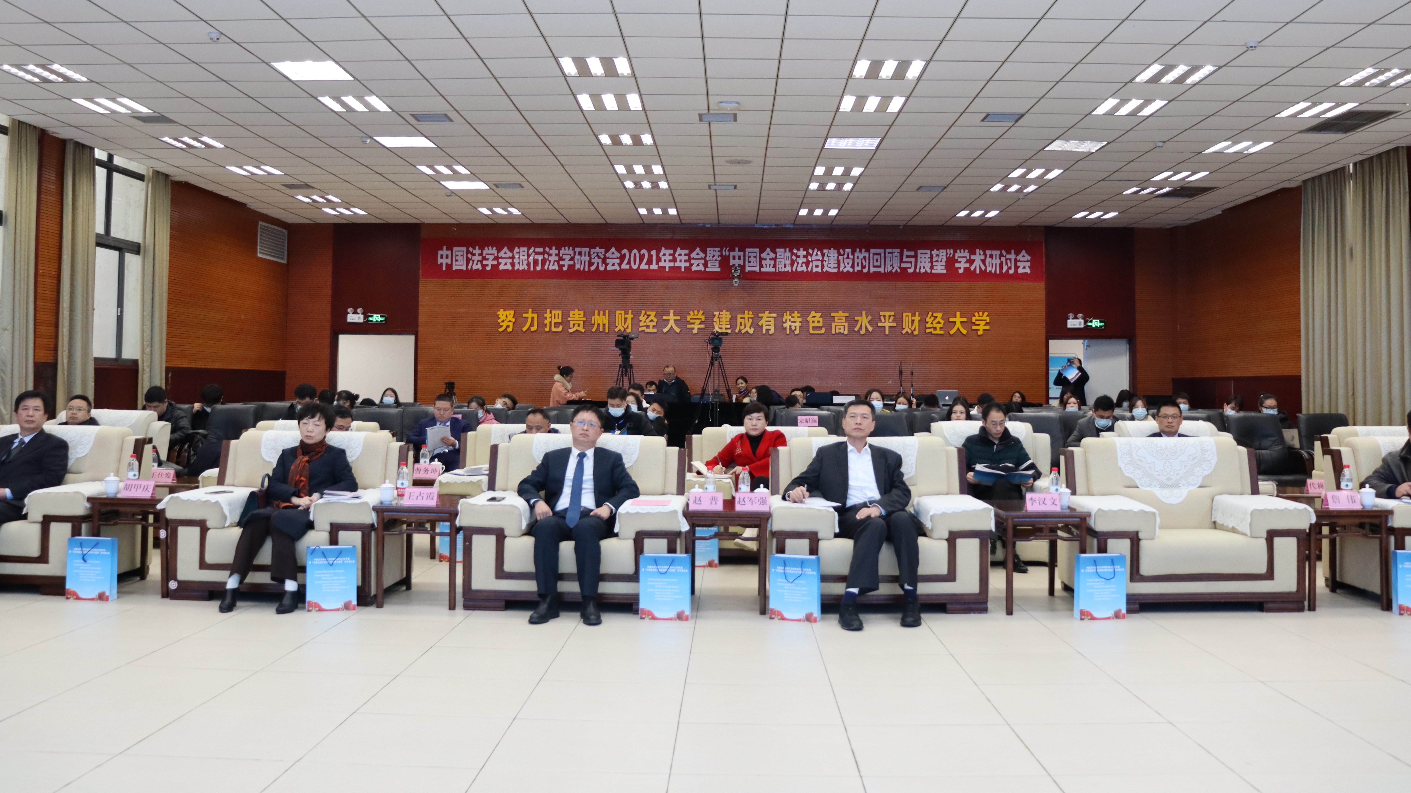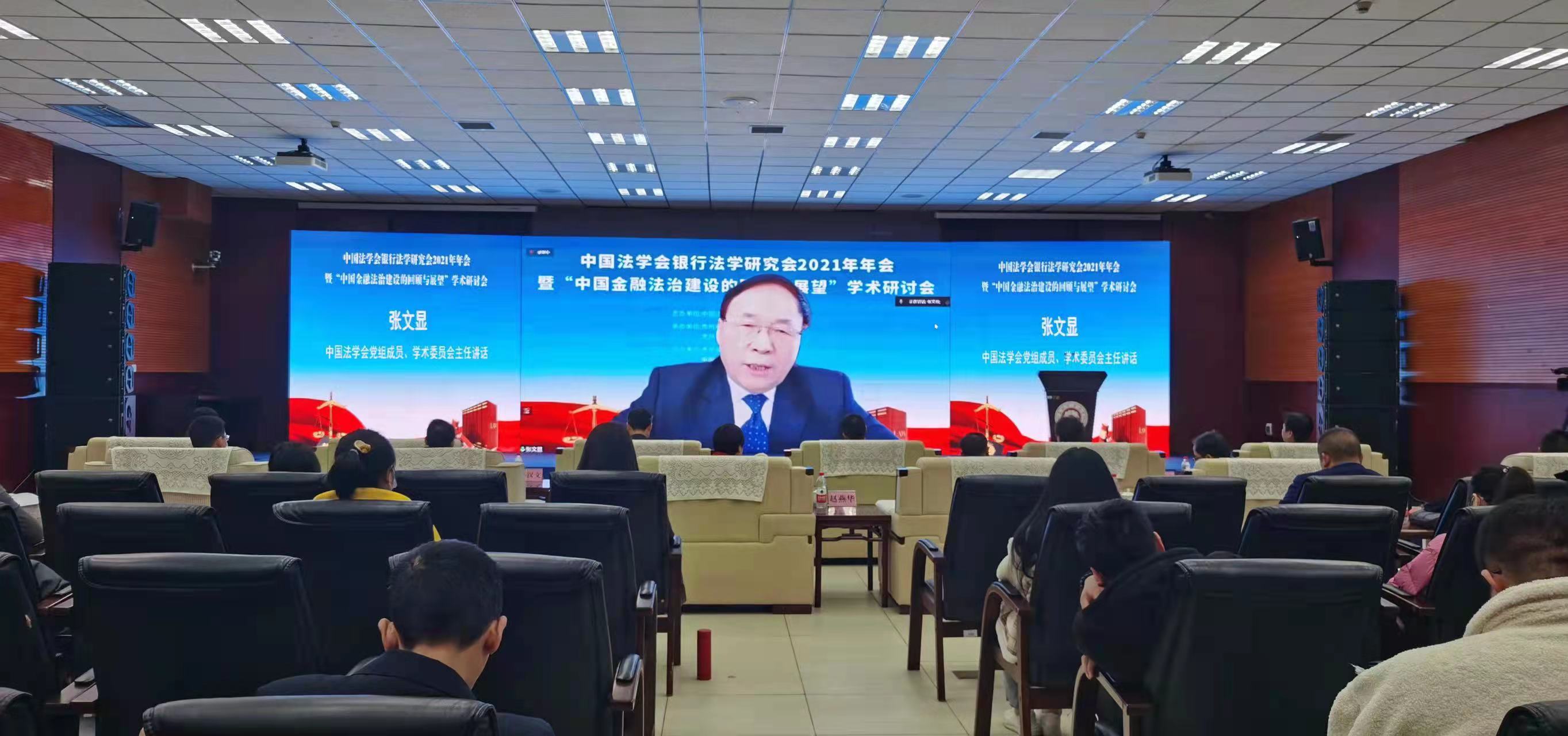 (万搏在线开户 唐沁馨 报道|摄影 米钰)2021年12月11日,万搏在线开户承办的中国法学会银行法学研究会2021年年会暨“中国金融法治建设的回顾与展望”学术研讨会在我校花溪校区成功举行。本次年会由中国法学会银行法学研究会主办,万搏在线开户和贵州省法学会金融法学研究会联合承办。贵州财经大学党委副书记、校长赵普教授,中国法学会党组成员、学术委员会主任张文显教授,中国法学会银行法学研究会会长、中国政法大学王卫国教授,中国法学会银行法学研究会名誉会长、原中国建设银行副行长黄毅,中国法学会银行法学研究会常务副会长、中国银保监会首席风险官刘福寿,贵州省法学会专职副会长兼秘书长王占霞,中国光大银行贵阳分行行长赵军强出席了本次年会,来自全国27家高校、银行及律师事务所的专家学者1500人参加了线上会议。会议由贵州财经大学党委委员、副校长李汉文教授主持。