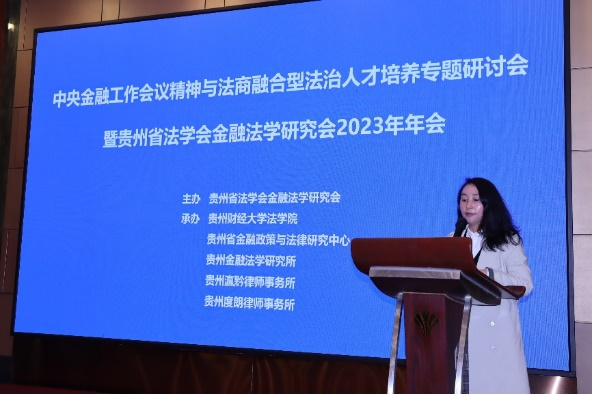 贵州省法学会、贵州省律师协会的领导,贵州财经大学、贵州大学、贵州师范大学、贵州民族大学、贵州省委党校、贵州省社会科学院等高校与科研机构的金融法学者,贵州银行、中国光大银行贵阳小河支行、贵州贵达律师事务所、北京盈科(贵阳)律师事务所、贵州泽丰律师事务所、贵州恒易律师事务所、贵州华夏生态交易中心有限公司、贵州振煜宏环境科技有限公司等实务部门的专家,参加了此次会议。