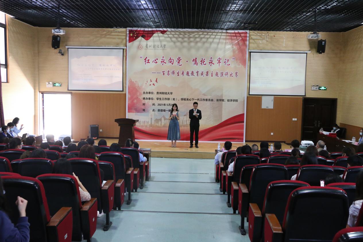 (万搏在线开户 程宇 报道|摄影 万沙 米钰)5月25日,我校在崇德楼报告厅举行“红心永向党 嘱托永牢记”百名师生专题教育成果演讲比赛。本次比赛由学生工作部(处)、学校关心下一代工作委员会、万搏在线开户、经济学院承办,贵州省演讲研究会副秘书长、中国春晖演讲团宣讲员熊书毅,贵州省职工读书演讲协会副秘书长、贵州省演讲研究会会员韩丹,学生工作部(处)副部(处)长陈晓勇,学生工作部(处)何祖星,关心下一代工作委员会史恩贤担任评委,万搏在线开户党委书记詹伟、各学院参赛选手以及全校师生共计200余人参加活动。