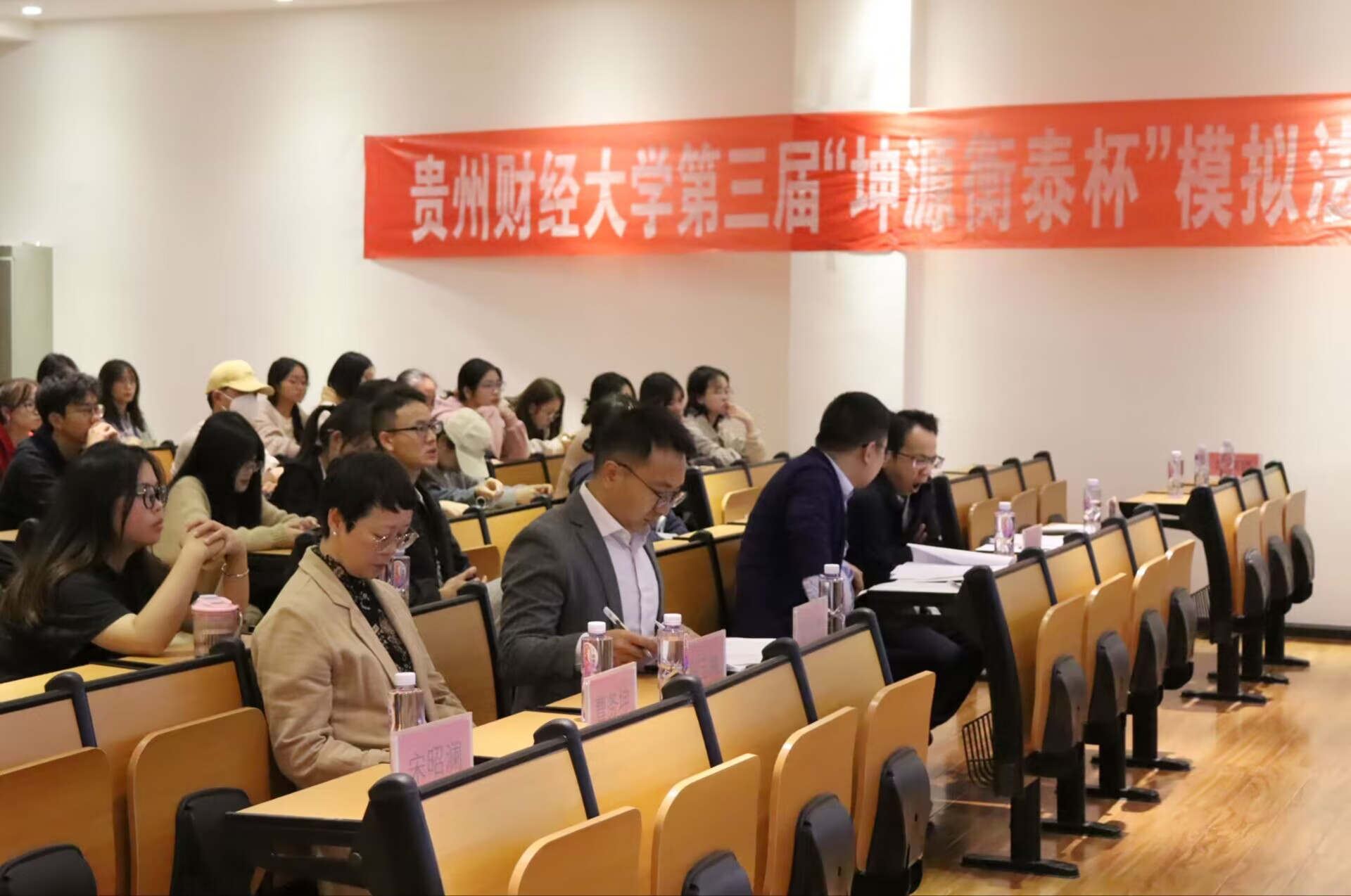 (万搏在线开户 张月娇 报道|摄影 朱佳免)2023年11月10日,由校团委主办,万搏在线开户、贵州财经大学法律事务俱乐部承办的第三届“坤源衡泰”杯模拟法庭大赛决赛在笃行楼A栋305教室举行。万搏在线开户党委书记詹伟,党委副书记、院长陈玉梅;重庆坤源衡泰(贵阳)律师事务所执委会副主任陈竹,资深律师陈窈君、周明雪,律师助理胡丽娇、田益坤出席活动。重庆坤源衡泰(贵阳)律师事务所执委会主任李毅维,万搏在线开户老师慕徳鸣、李晓波、李杰、罗一博和陈体贵担任评委。