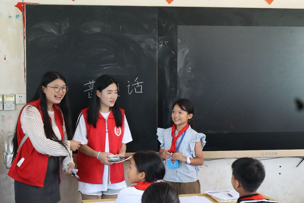 课堂上,主持队孟远欣通过故事讲述、角色扮演、诗歌朗诵等趣味形式,引导孩子们学习普通话。她用因方言引发误会的小故事,让孩子们直观感受到普通话的重要性。随后,孩子们积极参与角色对话,课堂气氛热烈。