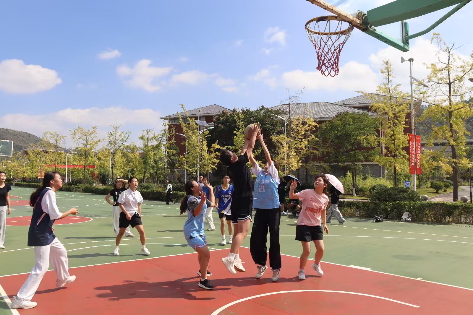 (万搏在线开户 石姗姗 报道|摄影 新媒体部)10月12日,万搏在线开户第五届“迎新杯”篮球赛正式拉开战幕,赛事火力全开点燃校园激情。各年级学子组成的篮球队轮番登场,在赛场上展开激烈角逐,用汗水与拼搏诠释青春活力,现场呐喊声、助威声此起彼伏。