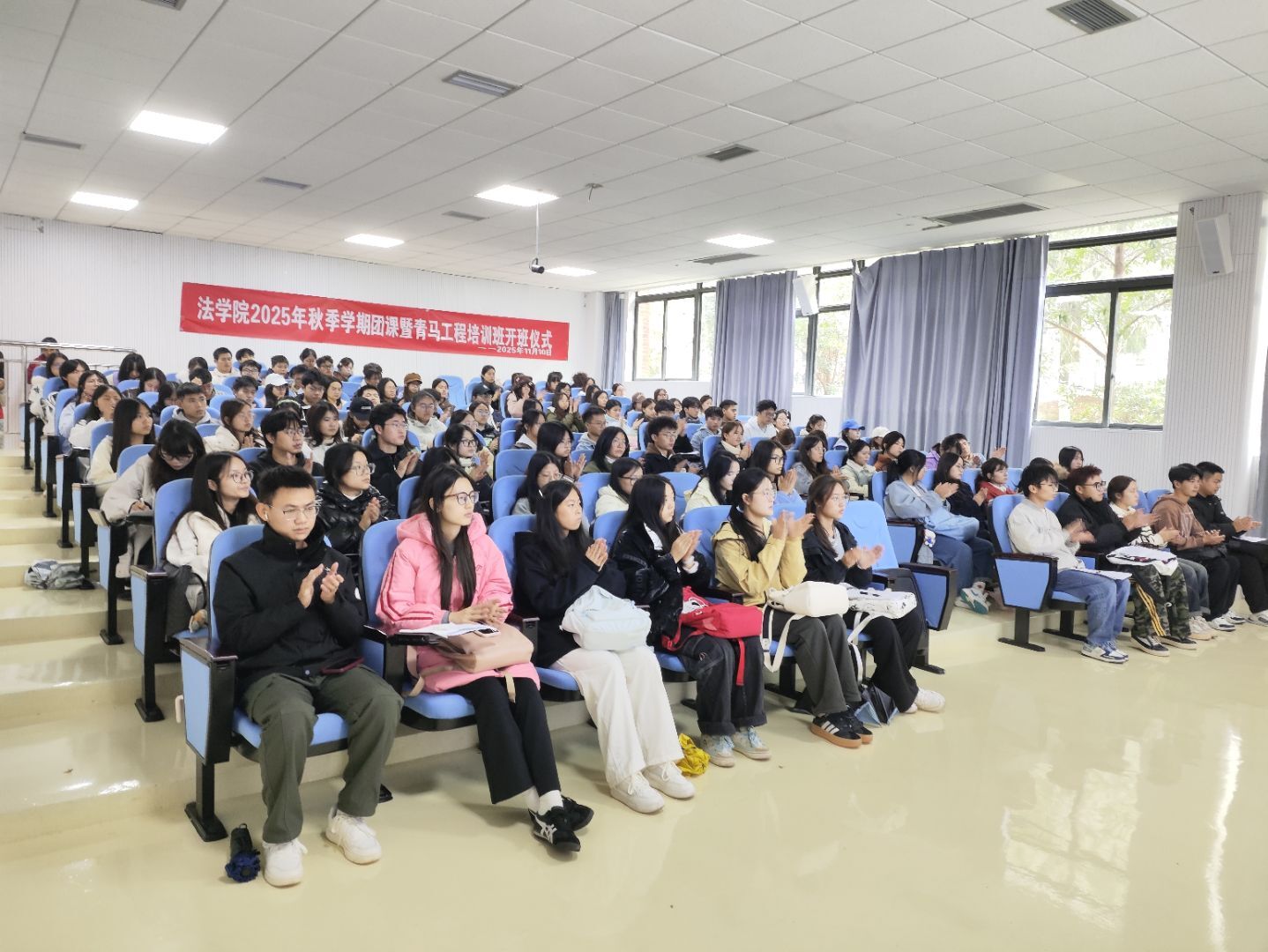 (万搏在线开户 徐露阳 报道|摄影 秦致知)为深入学习贯彻习近平新时代中国特色社会主义思想,引导广大团员青年坚定理想信念,强化责任担当,11月10日,万搏在线开户在乐学楼101举办2025年秋季学期团课暨青马工程培训班开班仪式,院党委副书记彭华、团委负责人刘美伶出席,104位学员参加。