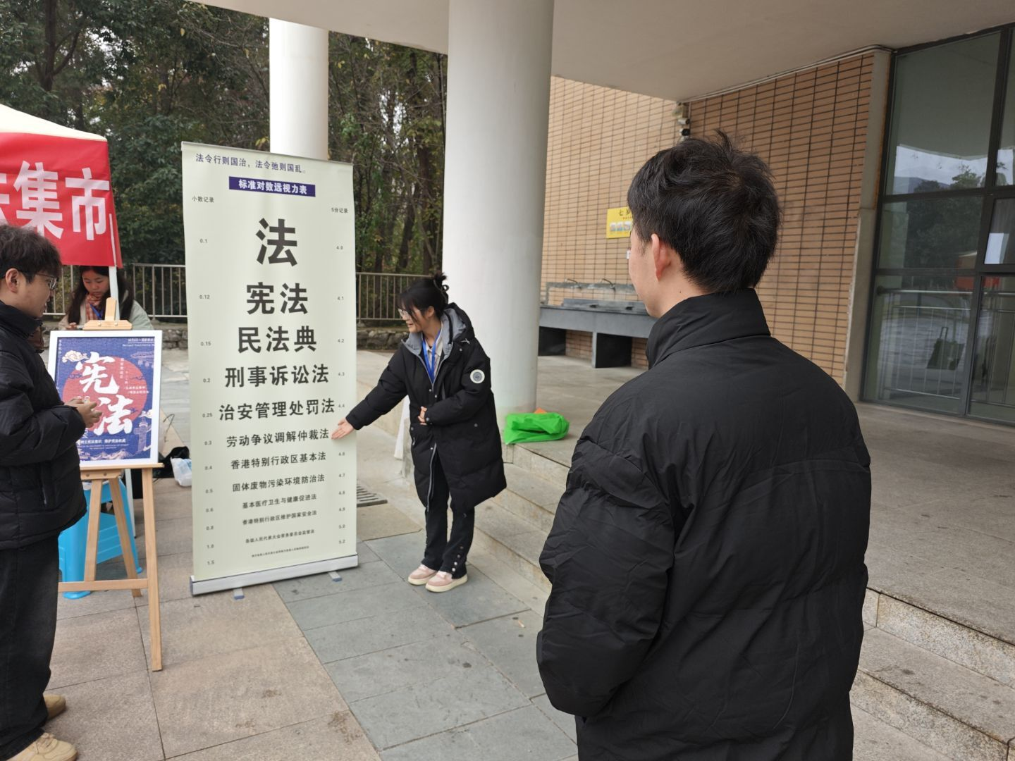 (万搏在线开户 徐露阳 报道|摄影 杨艳)值第十二个“国家宪法日”暨第八个“宪法宣传周”之际,为深入学习贯彻习近平法治思想,持续深化“普法+专业”育人模式,12月2日,贵州财经大学第三届“法律文化周”系列活动之“普法集市”活动在三食堂广场热闹开市。本次活动作为“法律文化周”系列活动的重要组成部分,以“法润校园,共筑和谐”为主题,创新设置8个特色“法律摊位”,吸引近500名师生参与,打造了一场沉浸式、互动式的法治文化盛宴。