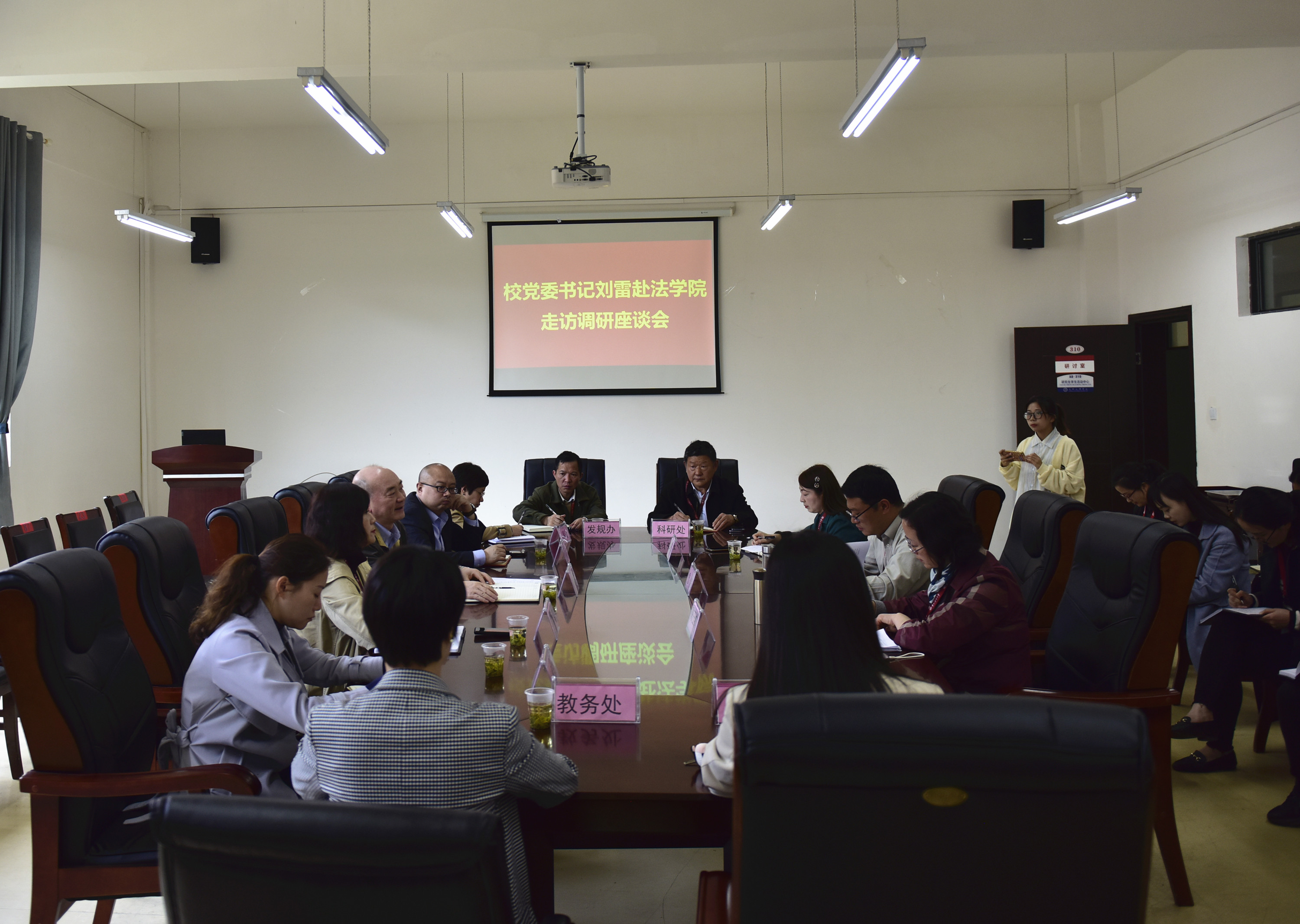 4月20日下午,校党委书记刘雷带领党政办公室、党委组织部、党委宣传部、人事处、发展规划与学科建设办公室、教务处、科研处和国有资产管理处等相关职能部门负责人到万搏在线开户走访调研,了解学院重新组建后的情况及面临的机遇与困难。万搏在线开户党委书记詹伟,副院长(正处级、主持工作)陈玉梅,党委副书记彭华,以及全部行政人员、教师代表参加调研座谈会。