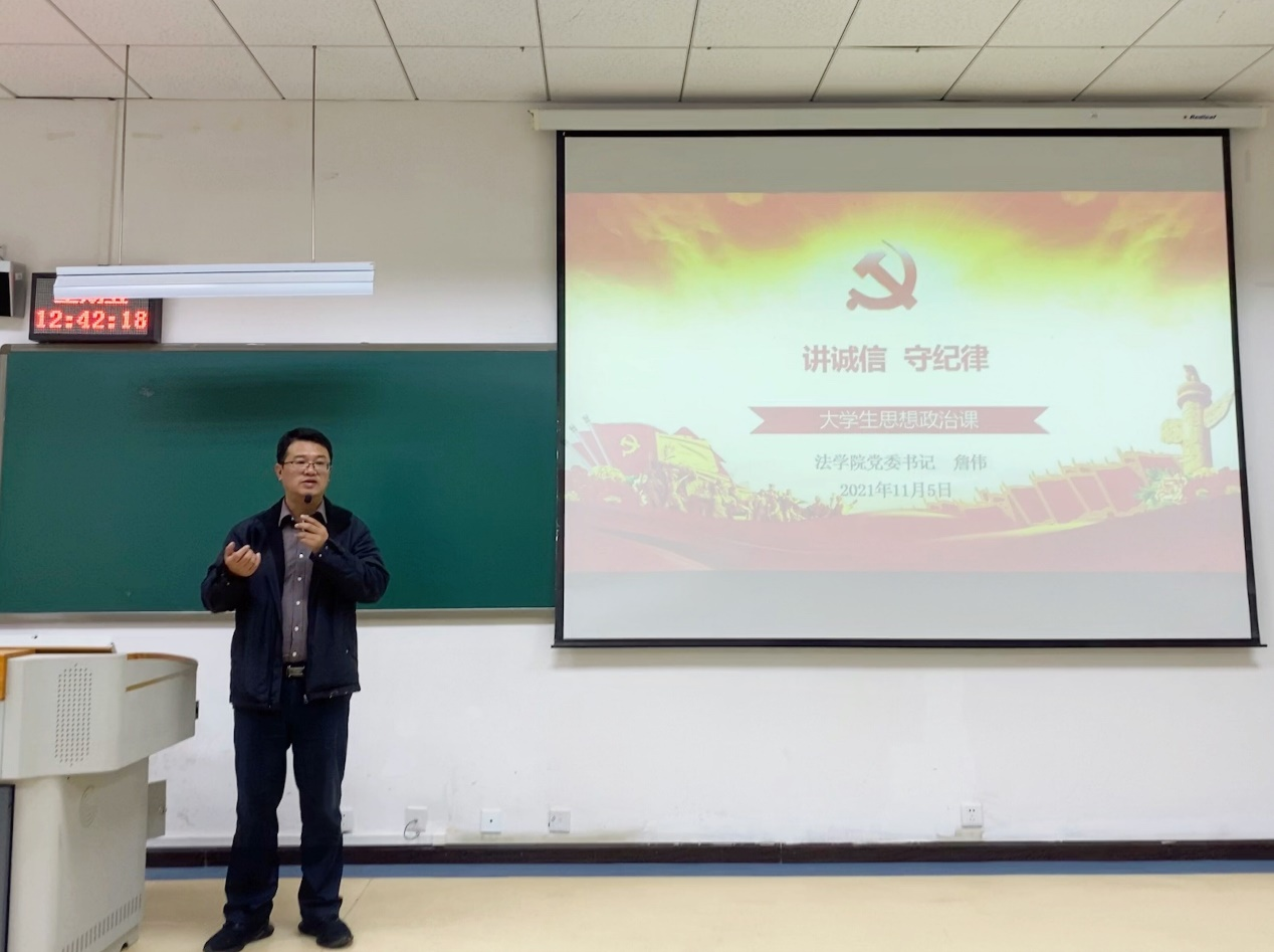 (万搏在线开户 图文/报道 杨洁芮)为增强同学们的诚信意识,提升同学们的诚信规范,2021年11月5日中午12:30,万搏在线开户党委书记詹伟在乐学楼1-1教室上题为“讲诚信,守纪律”的大学生思想政治课,学院在校本科生、研究生共120余人参加。校学生工作部(处)蔡利红老师到场听课。