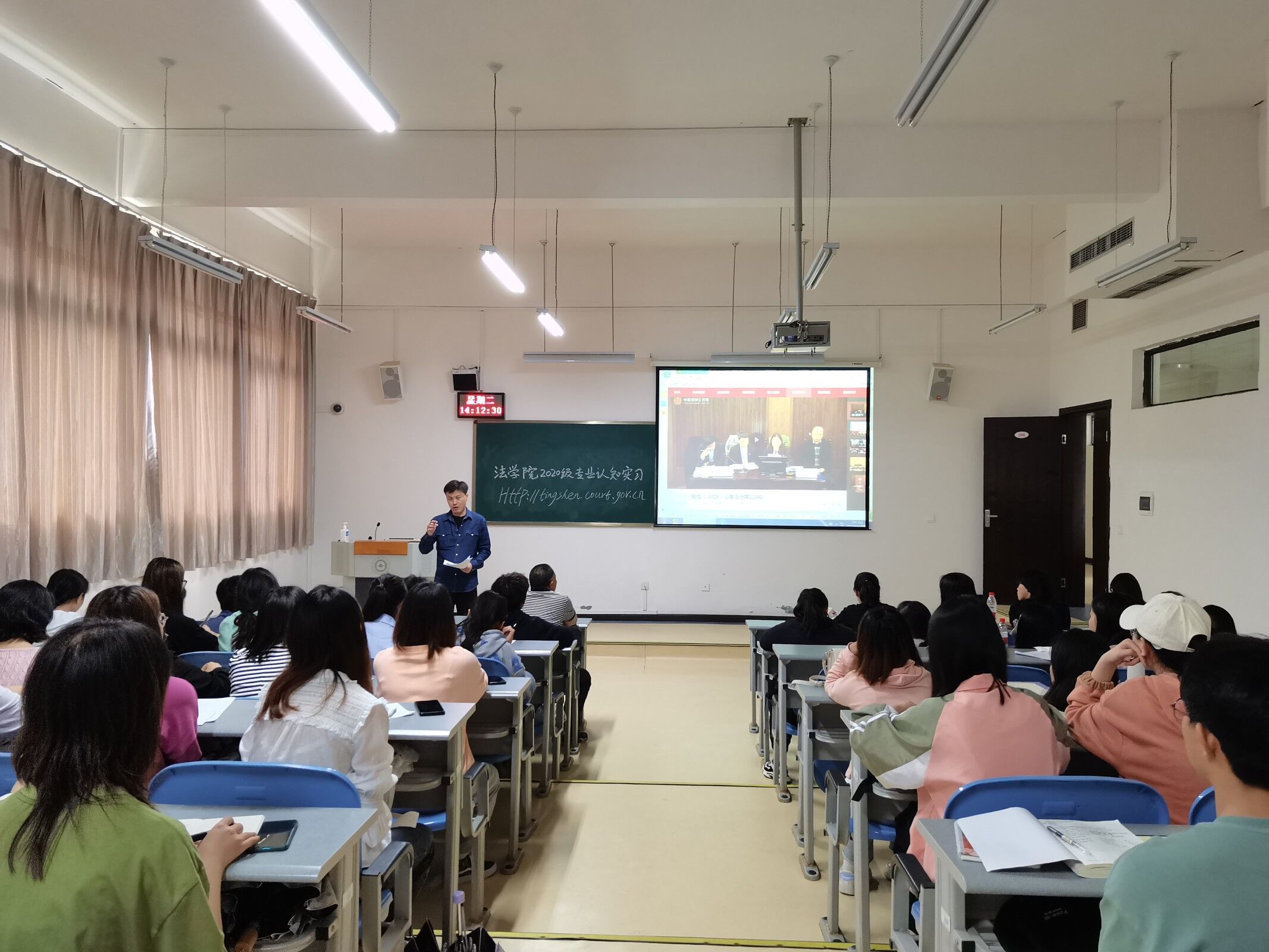 (万搏在线开户 图文/报道 何鹏 王振华)为提高我院学生法律实践应用能力,增强实践教学的针对性,充分发挥法学专业学生的能动性。2022年6月14日下午,我院于文德楼106教室开展了以“法学概况与专业介绍”为主题的专业认知实习活动,万搏在线开户2020级本科全体同学参与本次活动。学院党委副书记彭华,院党委委员、教授曹务坤,实践教学负责人何鹏老师、万搏在线开户教务科科长王振华参会。
