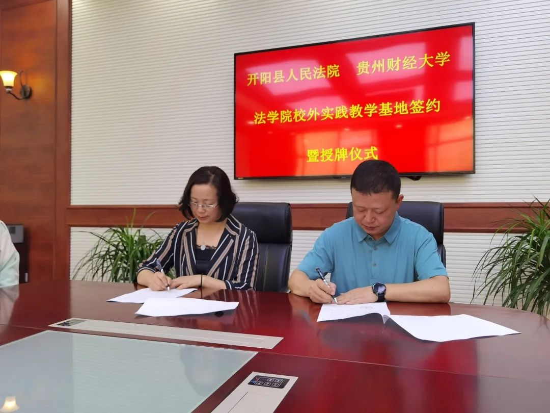 签约仪式上,陈玉梅与罗黔龙代表双方签署战略合作协议。同时,曹务坤向开阳人民法院授牌“实践教学基地”。