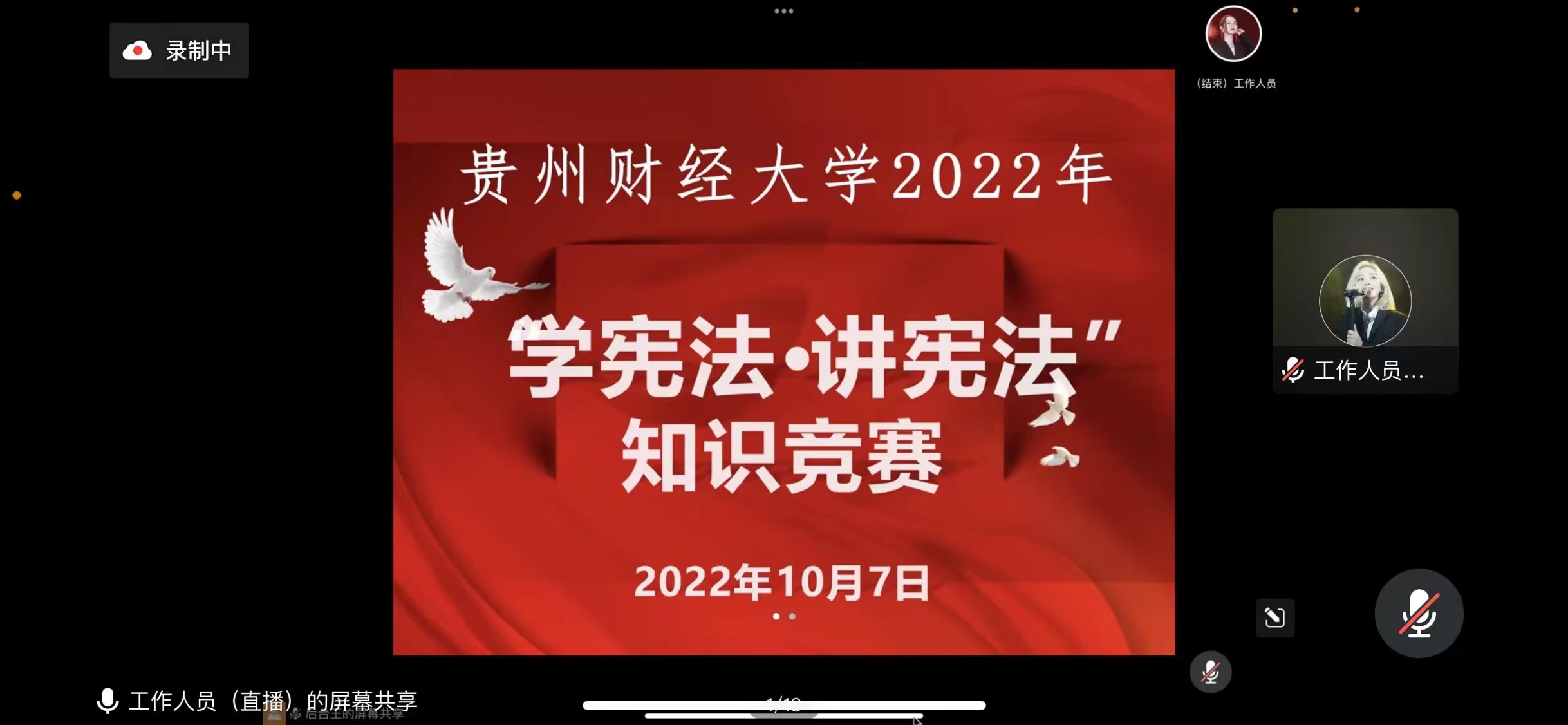 (万搏在线开户)为深入学习贯彻习近平法治思想,纪念现行宪法颁布施行四十周年,更好地发挥宪法在全面依法治国和校园文化生活中的重大作用,我校于10月7日下午举行2022年“学宪法 讲宪法”线上知识竞赛。本次比赛由万搏在线开户承办,各学院共计八名选手参赛。全校近200余名师生线上观看了比赛,我院武汉大学法学博士谷骞担任评委。