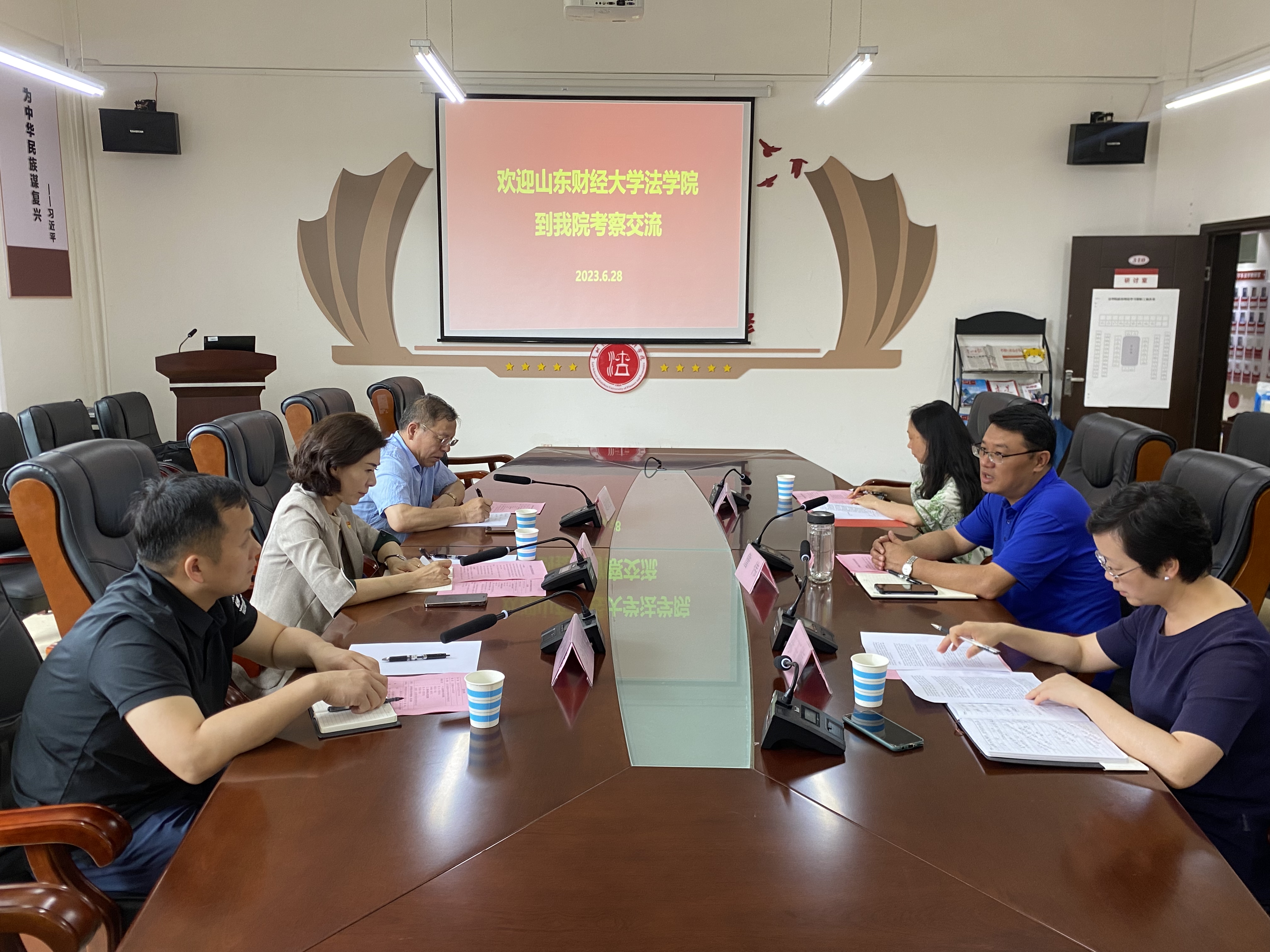 詹伟对山东财经大学万搏在线开户一行来访表示热烈欢迎。双方围绕党建工作开展、法学教育发展趋势、教学方法、学生培养、校际合作、科研项目、人才培养、国际交流与合作等方面进行了交流讨论。