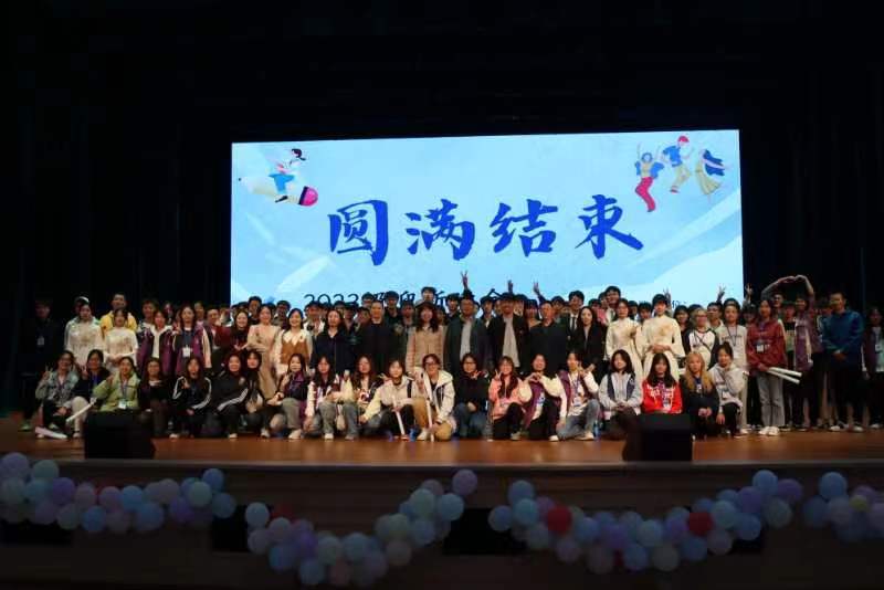三个学院的新生代表发言后,激情飞扬的乐队演奏《不为谁而作的歌+全是爱》拉开了晚会的序幕。热情张扬的街舞《encore2.3》,复古色彩的歌舞《我要你》,警示反诈骗的舞台剧《刷单风波》,展望未来的说唱《hey kong》,极具张扬个性的《T台秀》,引起全场大合唱的《当你》等各具特色的节目一一登场亮相。晚会在教师暖心合唱《你曾是少年》中拉下了的帷幕。