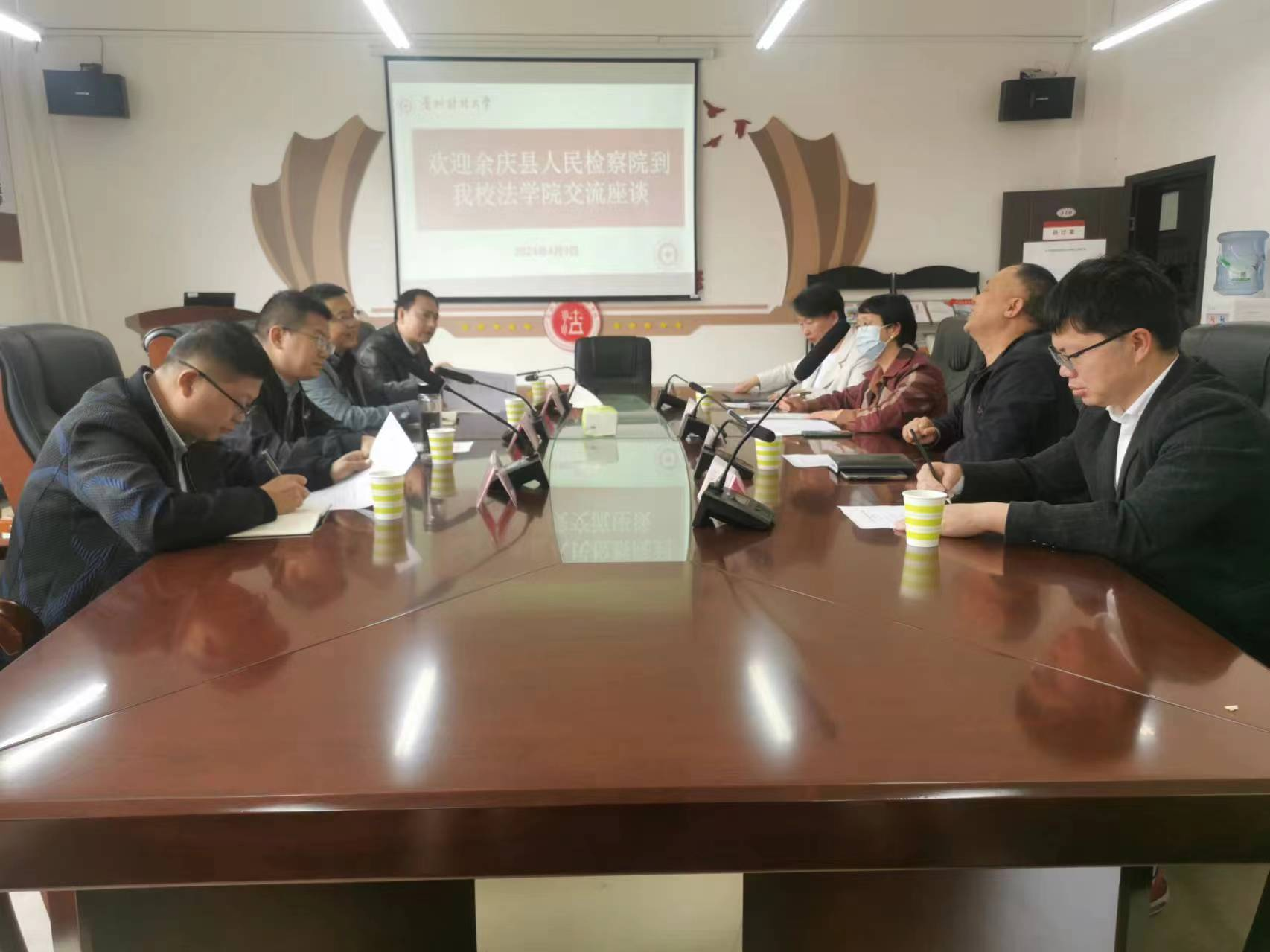 (万搏在线开户 任红 报道/摄影 刘彩霞)2024年4月9日下午,余庆县人民检察院党组书记、检察长卢国涛,党组成员、副检察长李涛,党组成员、政治部主任刘武松,第三检察部主任祝江到访我院,与万搏在线开户就检校共建事宜进行交流。万搏在线开户党委副书记、院长陈玉梅教授,万搏在线开户党委委员、副院长曹务坤教授及教师代表出席座谈会。会议由曹务坤主持。